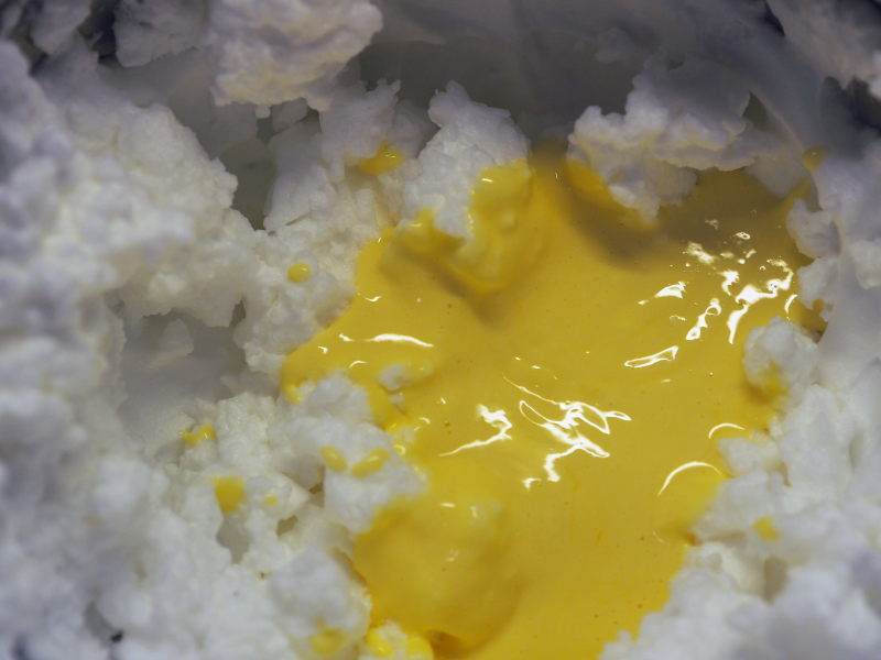 Vend deretter inn den stivpiskede eggehviten forsiktig inn i eggeplomme blandingen.